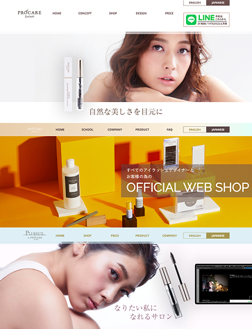プロケアラボは老舗のマツエクの企業として2004年よりまつ毛エクステの研究サロンを作り 日本では、老舗と呼ばれるまつ毛専門のサロンのホームページの制作